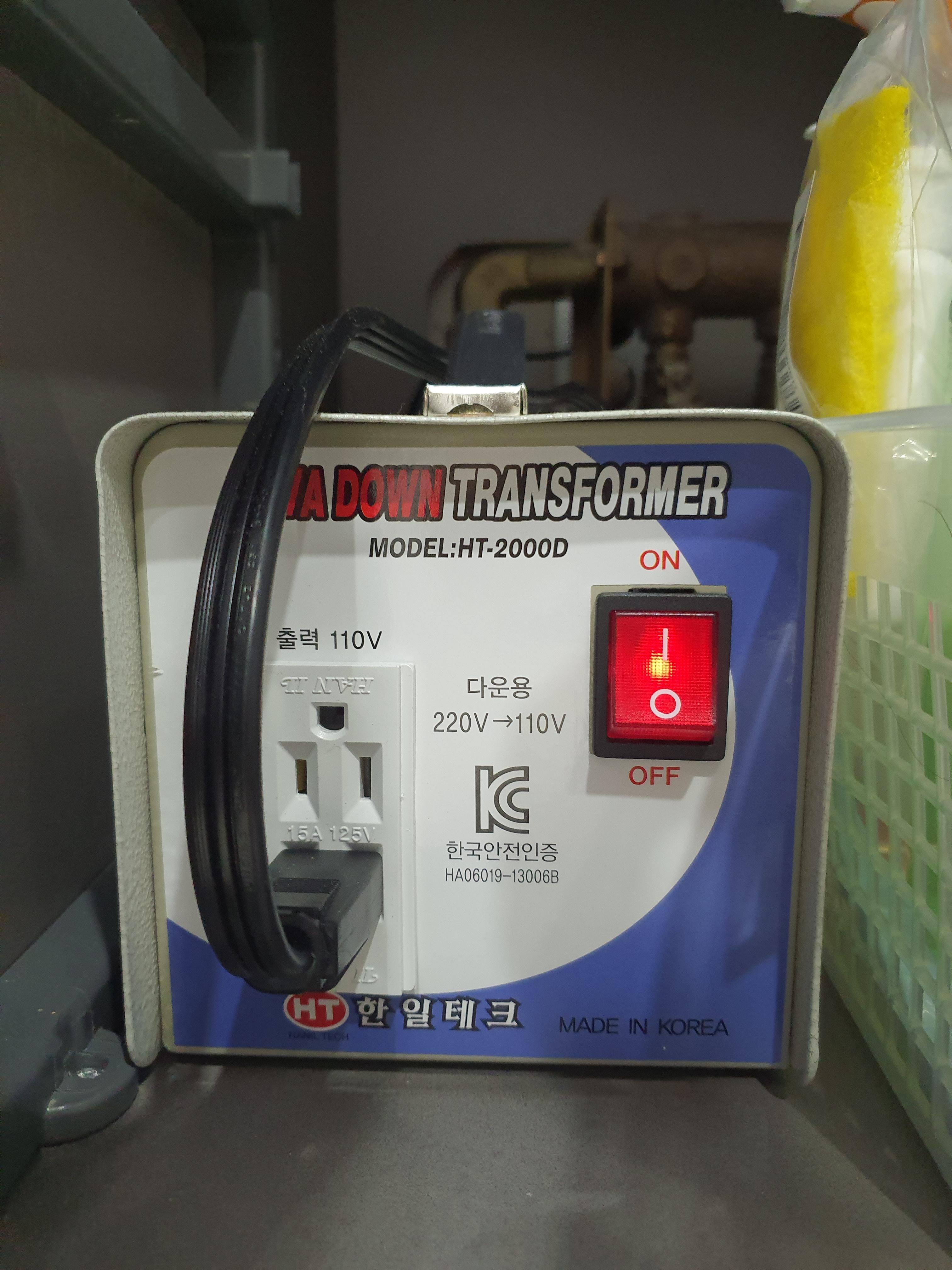 미국에서 직구하였기에 전압이 110v 라 2kw 짜리 변압기를 사용하였으며, 설치기사님께 여쭈어보니 지금까지 인싱크이레이터 직구상품 110v + 2kw 변압기 조합으로 수많은 설치를 하였는데 유럽발 230v 제품보다 사용중 모터의 문제발생가능성이 더 낮다고 하시더라구요 (변압기때문에 공간의 손해는 봤지만 그래도 안정적이라고하니 기분은 더 좋더라구요)