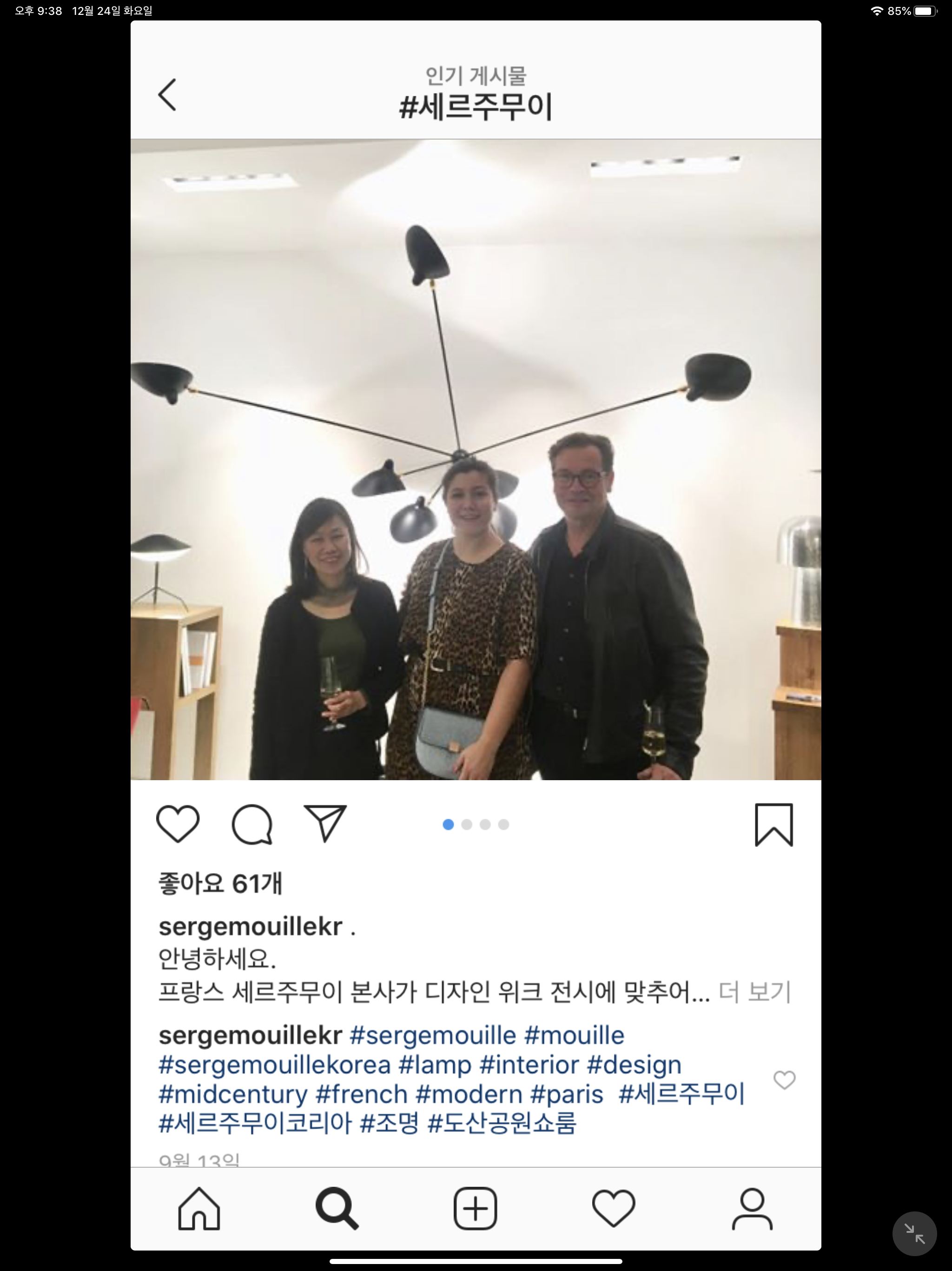 한참을 인스타를 뒤적이다 우연히 발견한 사진속의 조명. 세르주무이 라는 프랑스 조명인데 사진처럼 빛을 천장에 쏘면 누워서 봤을때 눈부시지 않을것이고 간접조명처럼 은은하게 보이지 않을까 싶어서 구매를 결정했지요 네이버를 뒤적이니 비교적 저렴한 가격에 중국산 st 제품을 판매하고 있는 셀러를 찾아 구매를 했어요 해외에서 오는 상품이라 수령까지는 10일정도 소요된것 같네요