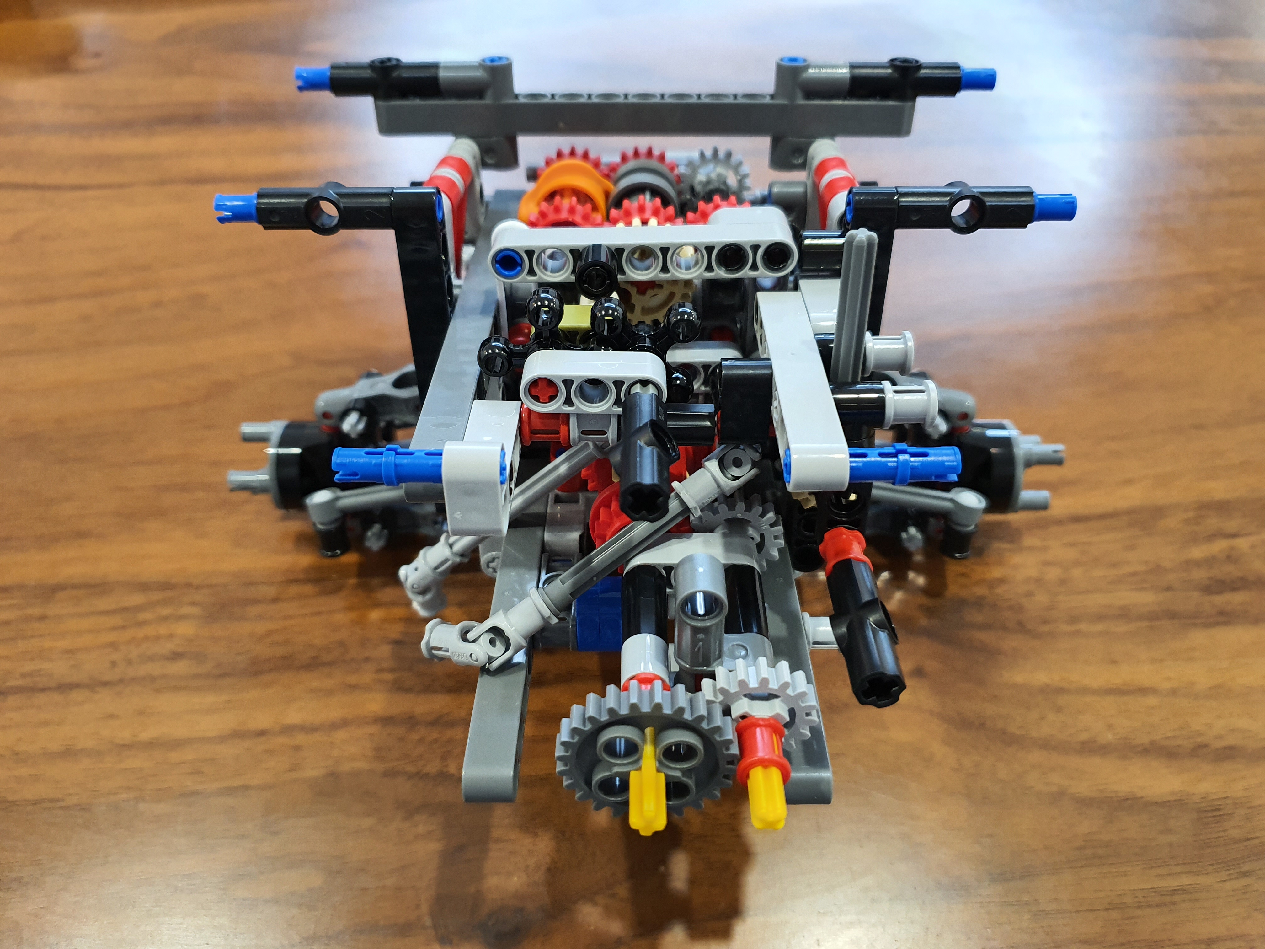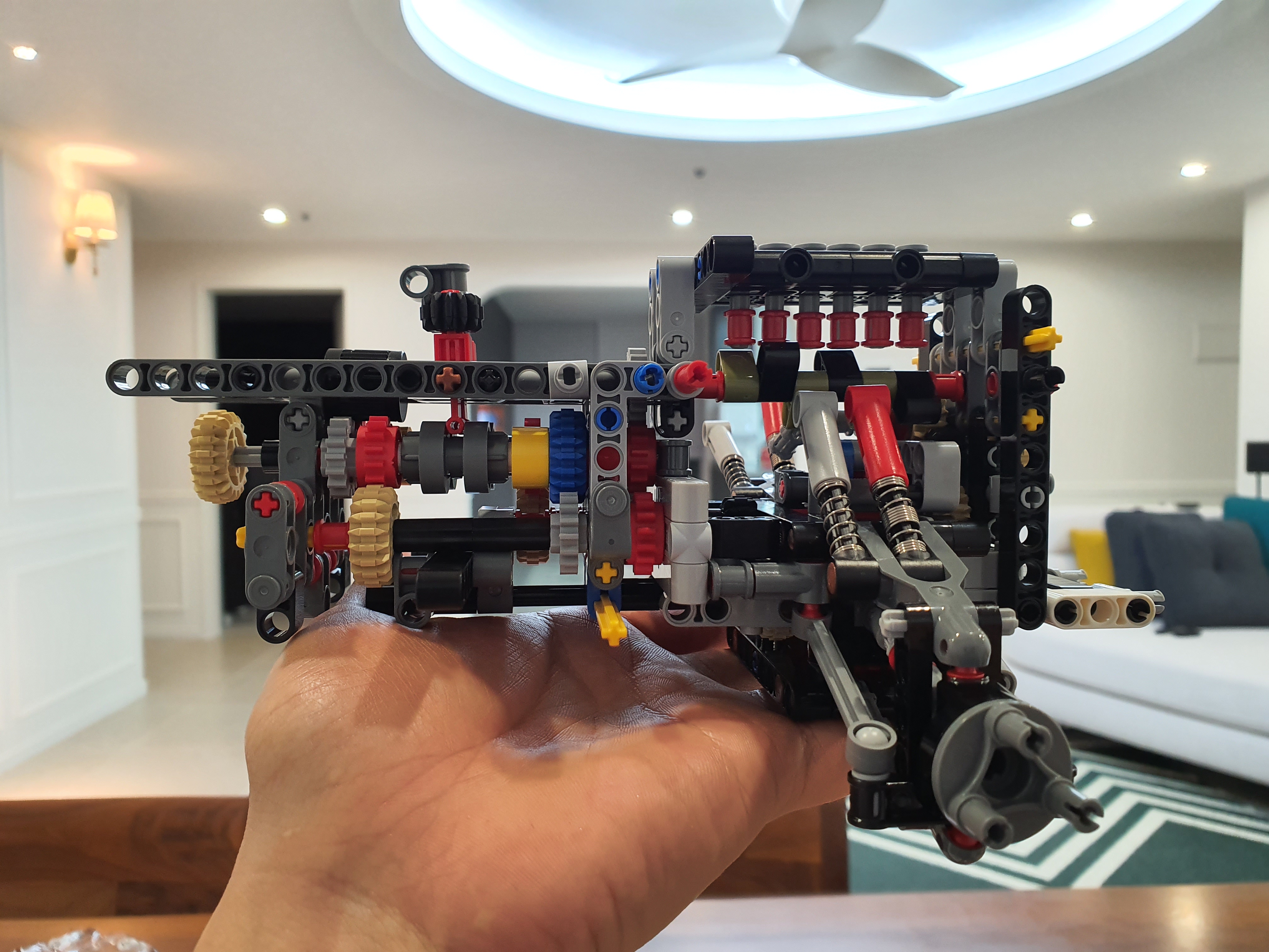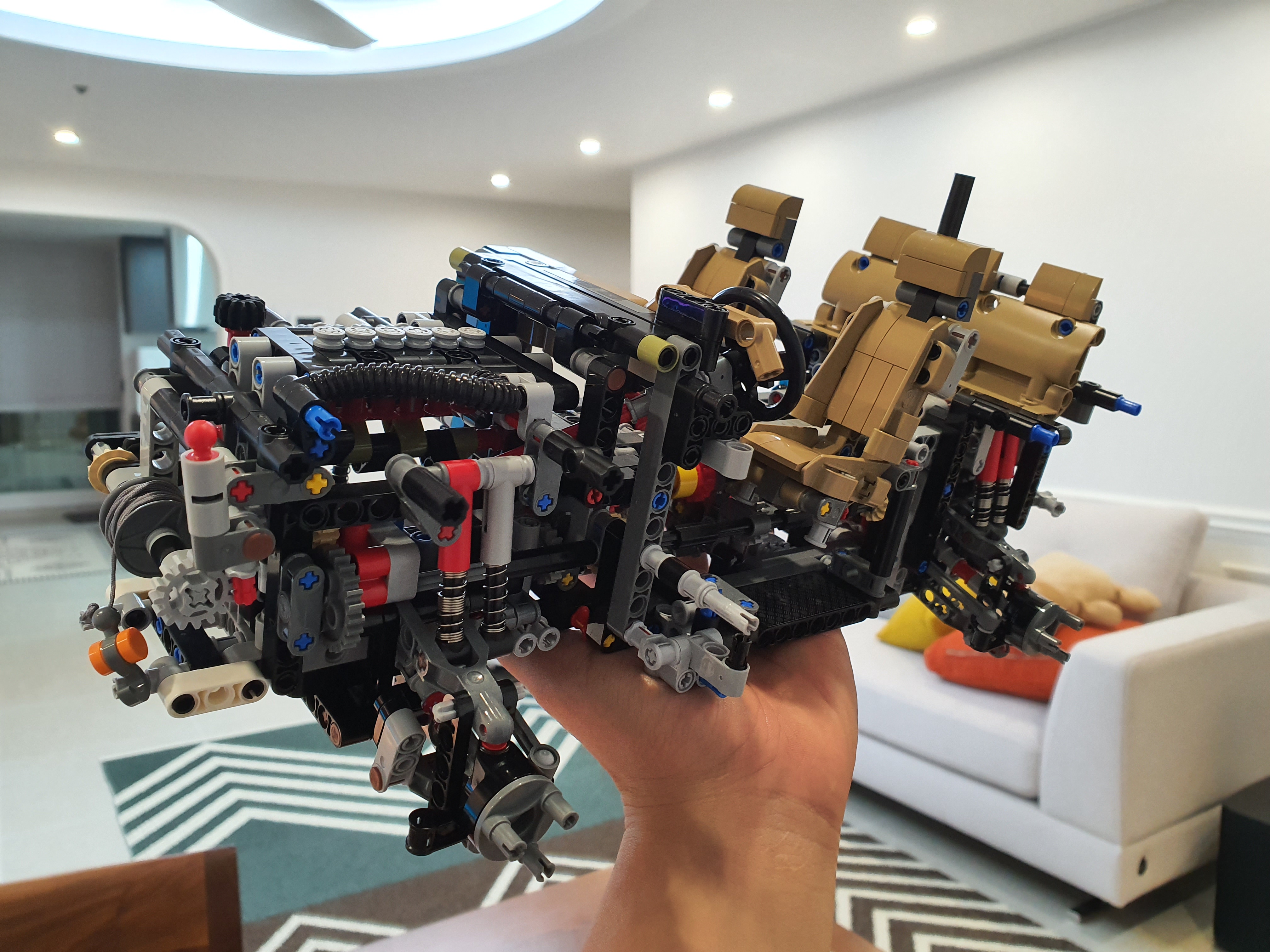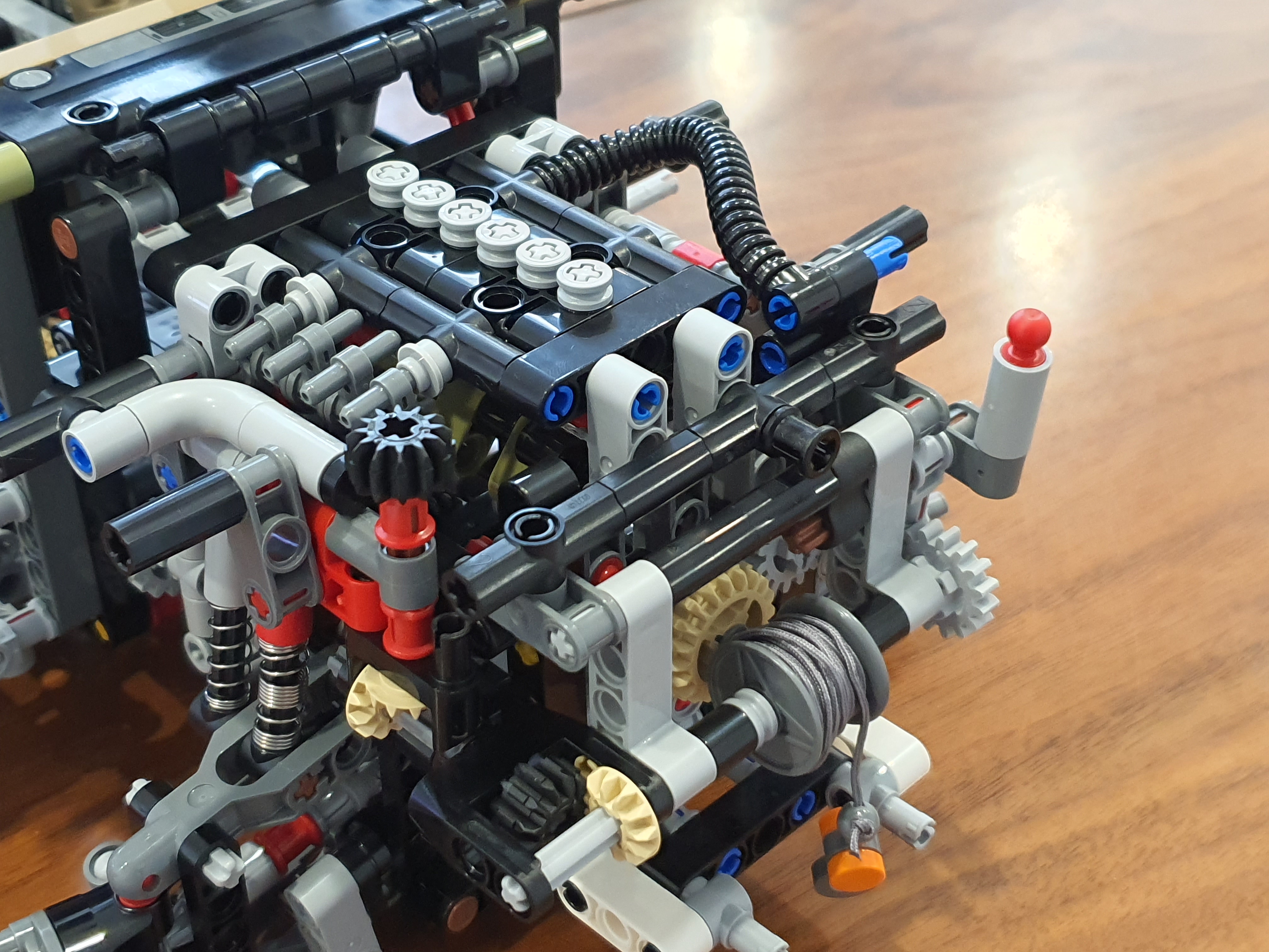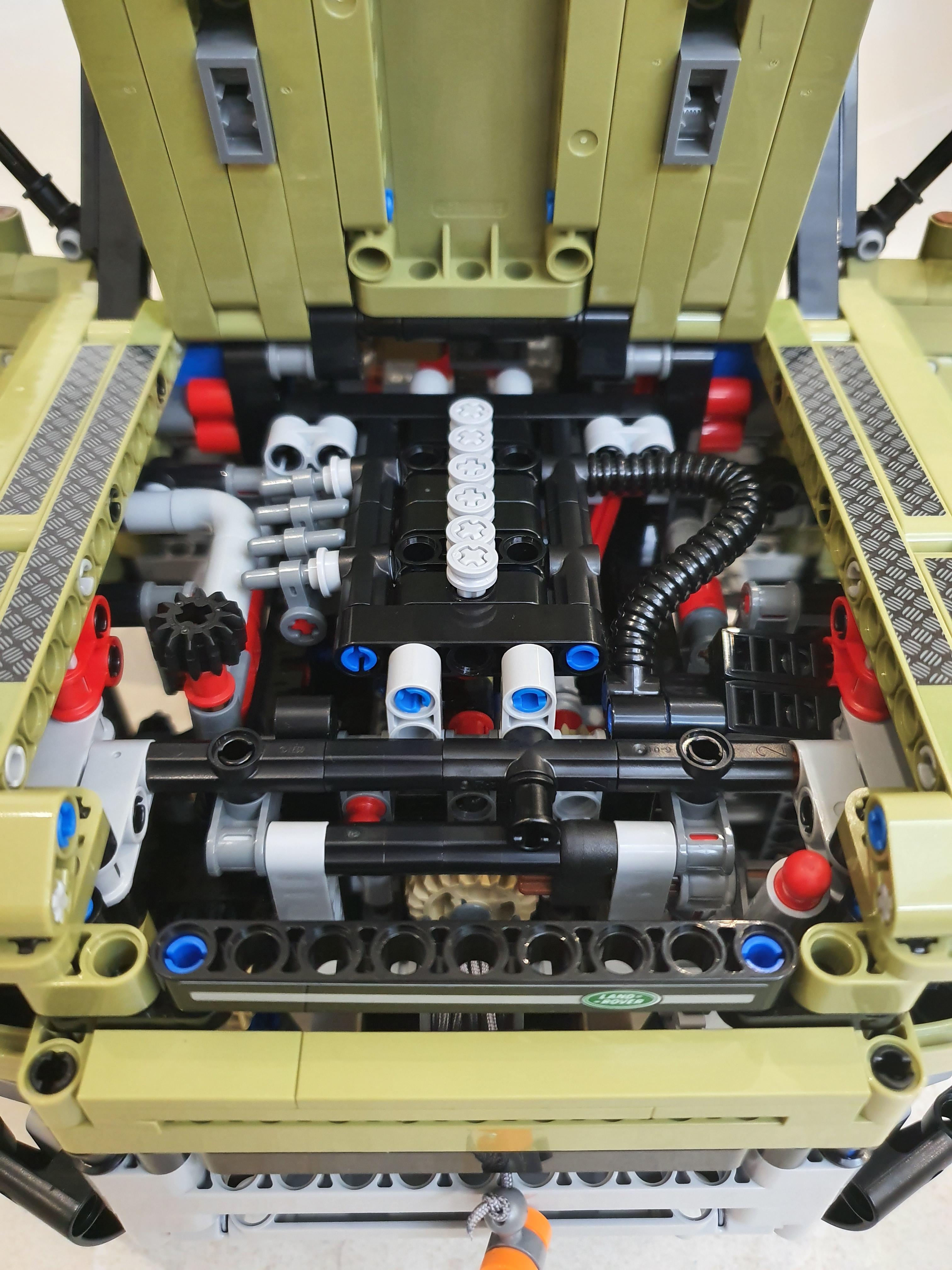 확실히 엔진룸의 표현도 그 어떤 테크닉 모델보다 디테일하다 견인고리의 표현을 위해서 실 까지 이용되었다 엔진의 6개의 실린더는 하단의 크랭크축이 움직임에따라 실제 6기통 차량의 실린더 움직임처럼 움직인다