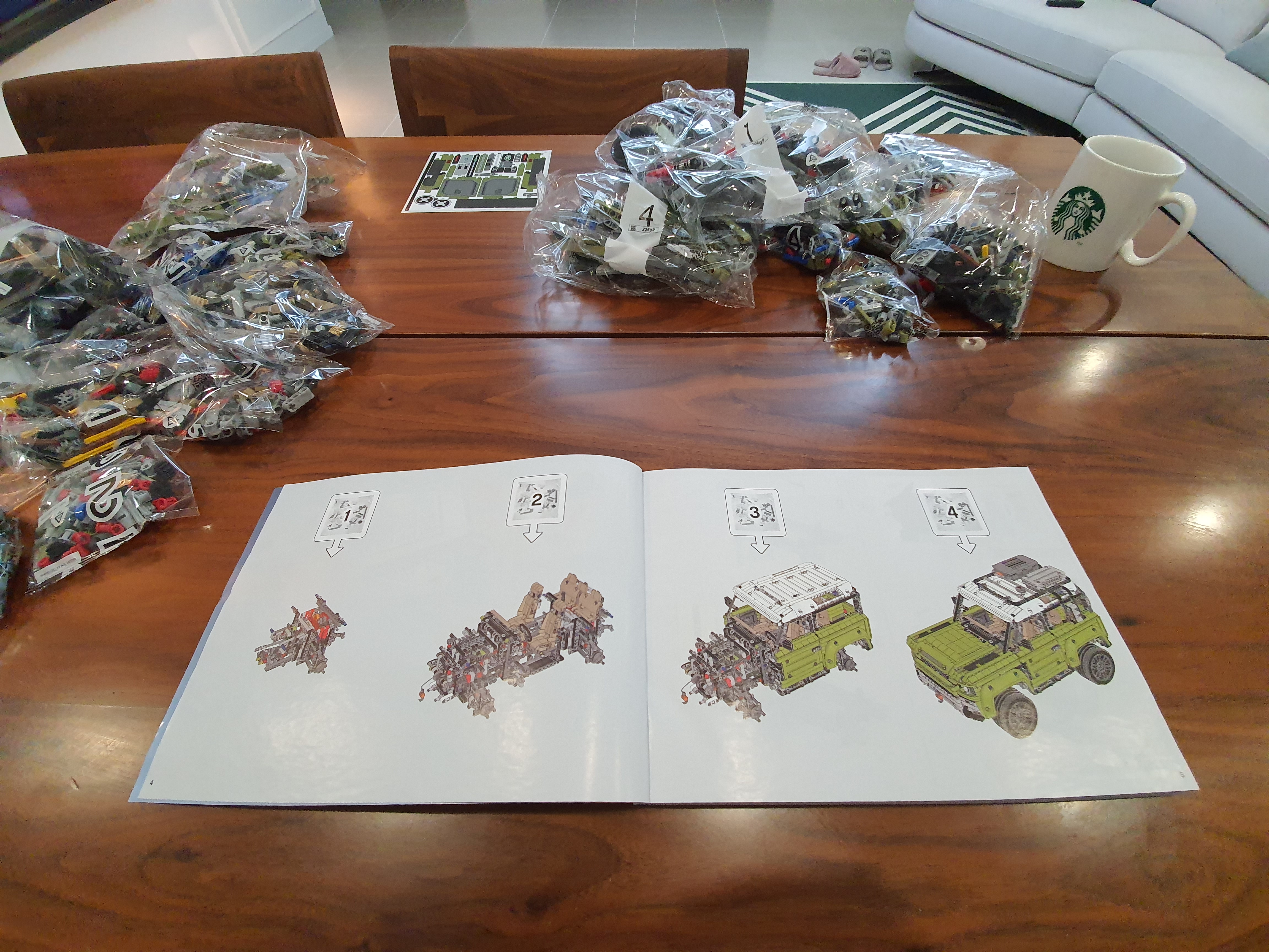 주말오후 4시 커피한잔과 팝뮤직비디오를 틀어놓고 손맛을 느끼기위해 준비시작 테크닉 디펜더 조립으로 하루를 온전하게 즐겨볼 생각이다