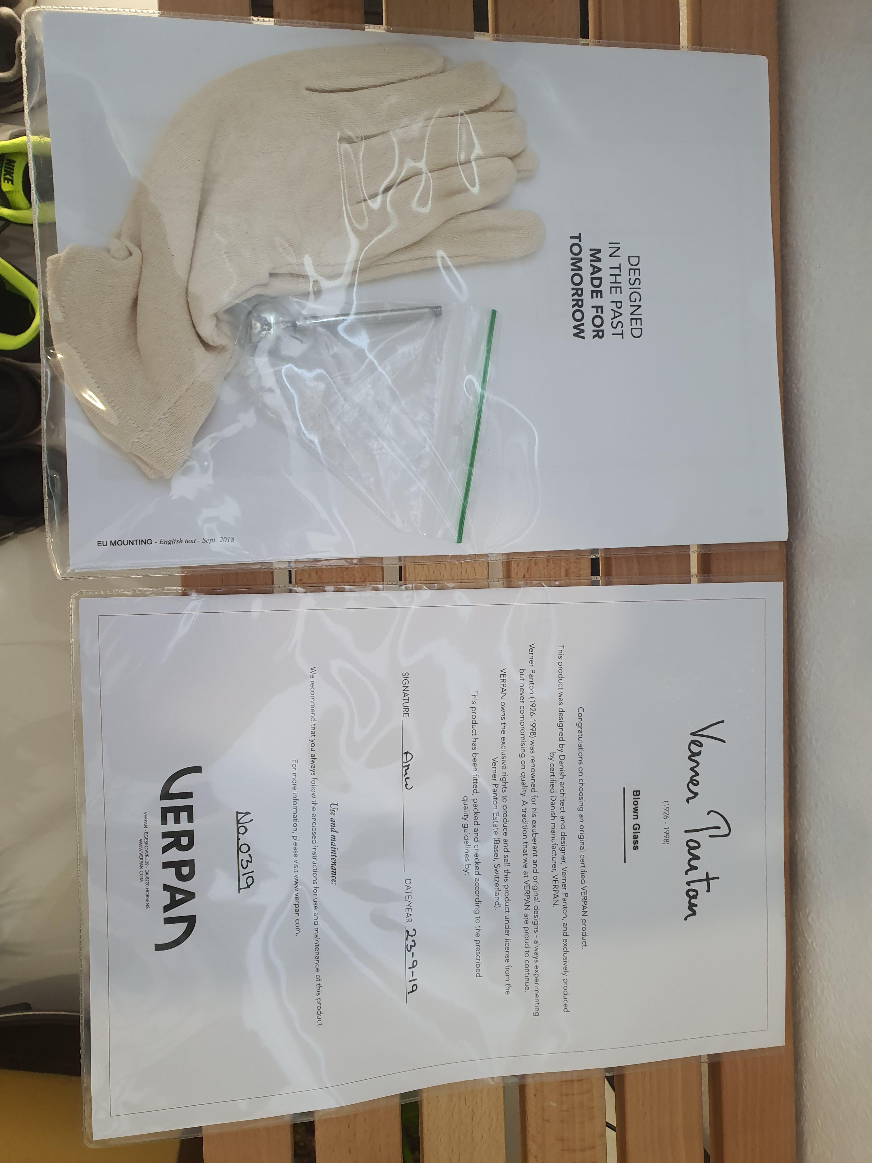 제품을 맨손으로 만지면 지문이 남으니 장갑이 동봉되어있고 영문설명서 및 베르판 보증서가 보인다