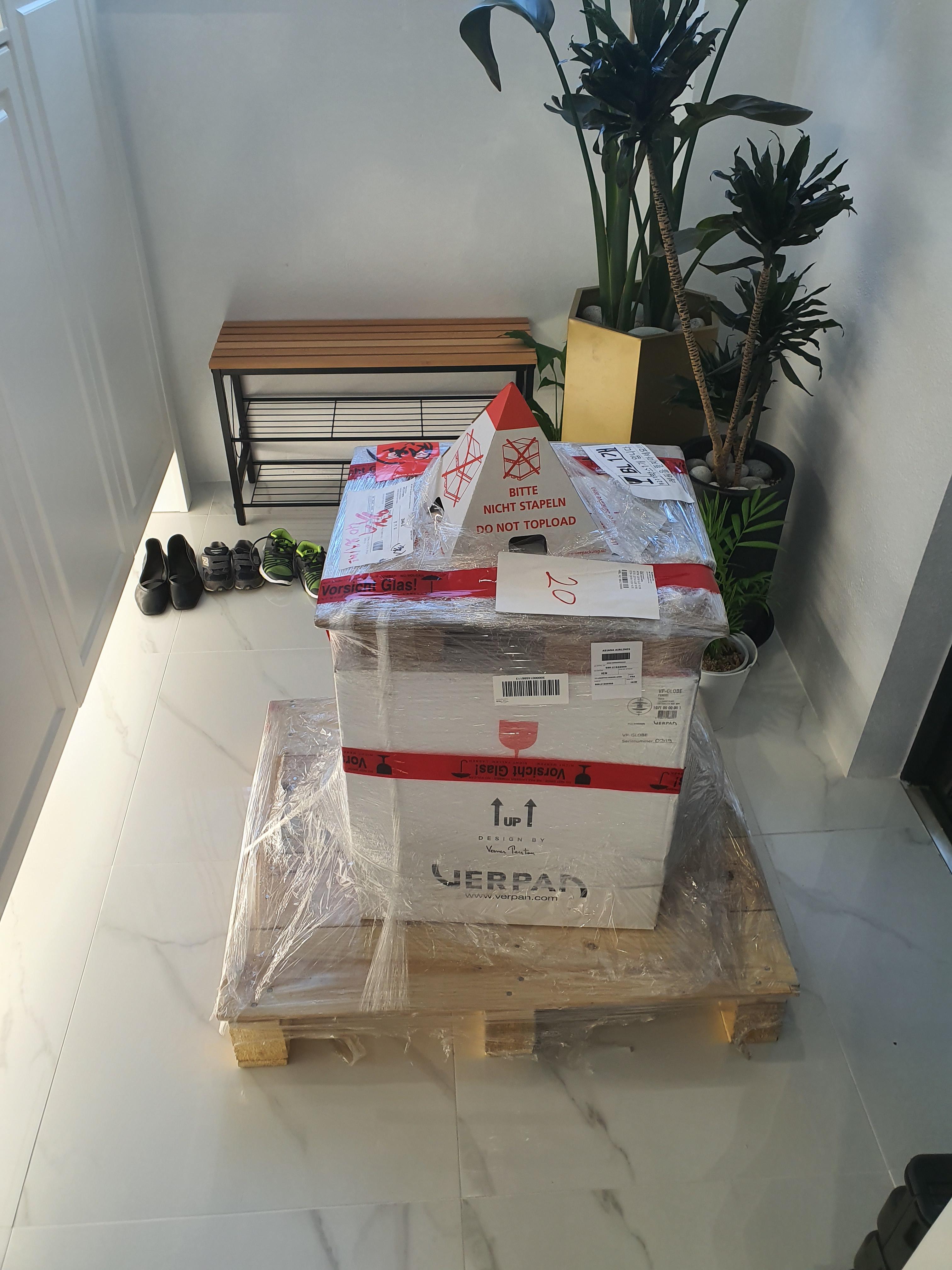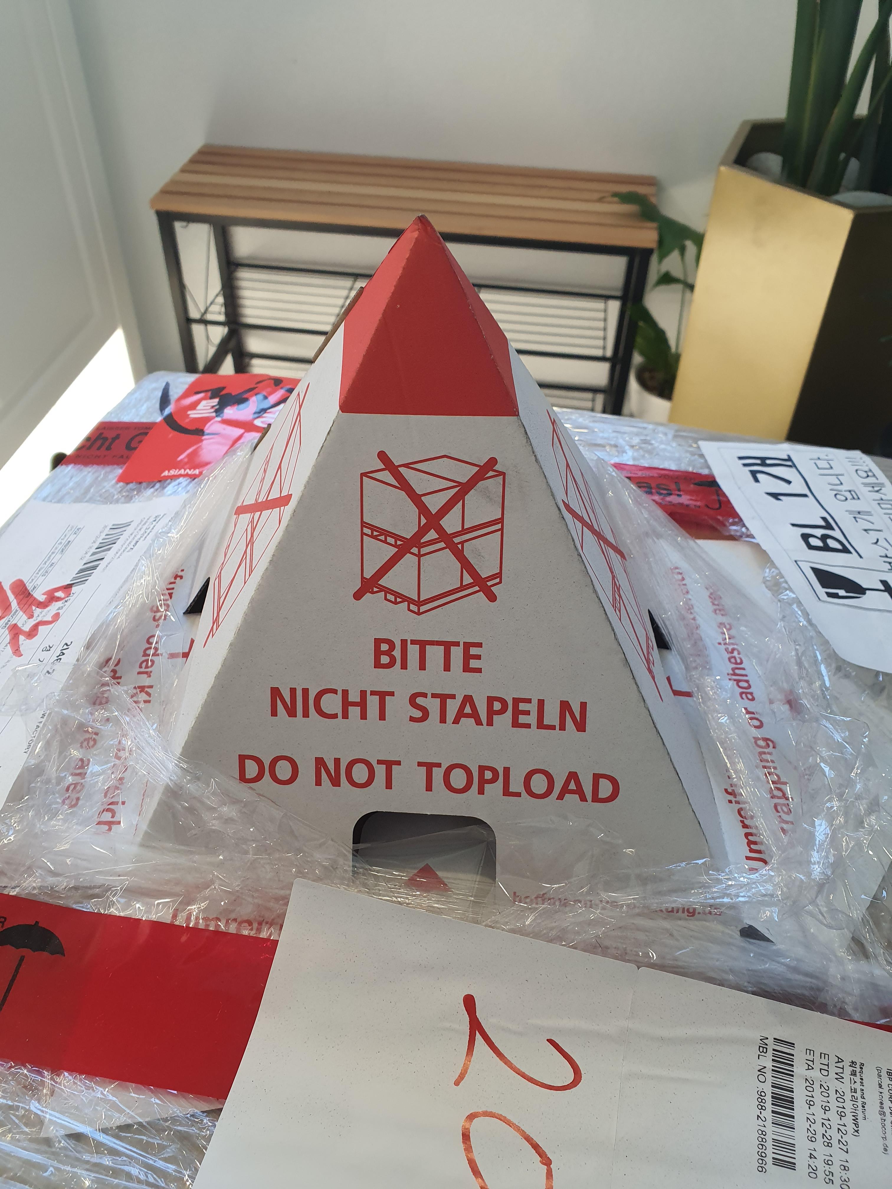 베르판 조명이 아크릴과 유리와 크롬 으로 되어있어 해외에서 먼 거리 배송되는데 파손가능성이 높으며 200만원대 고가임을 고려하였을때 이정도의 패키징은 되어야 한다는거. 박스가 뒤집히지 않도록 상단이 뾰족하다 물론 제품박스 위 다른 박스가 올라가지 않도록 하기위함 포함.