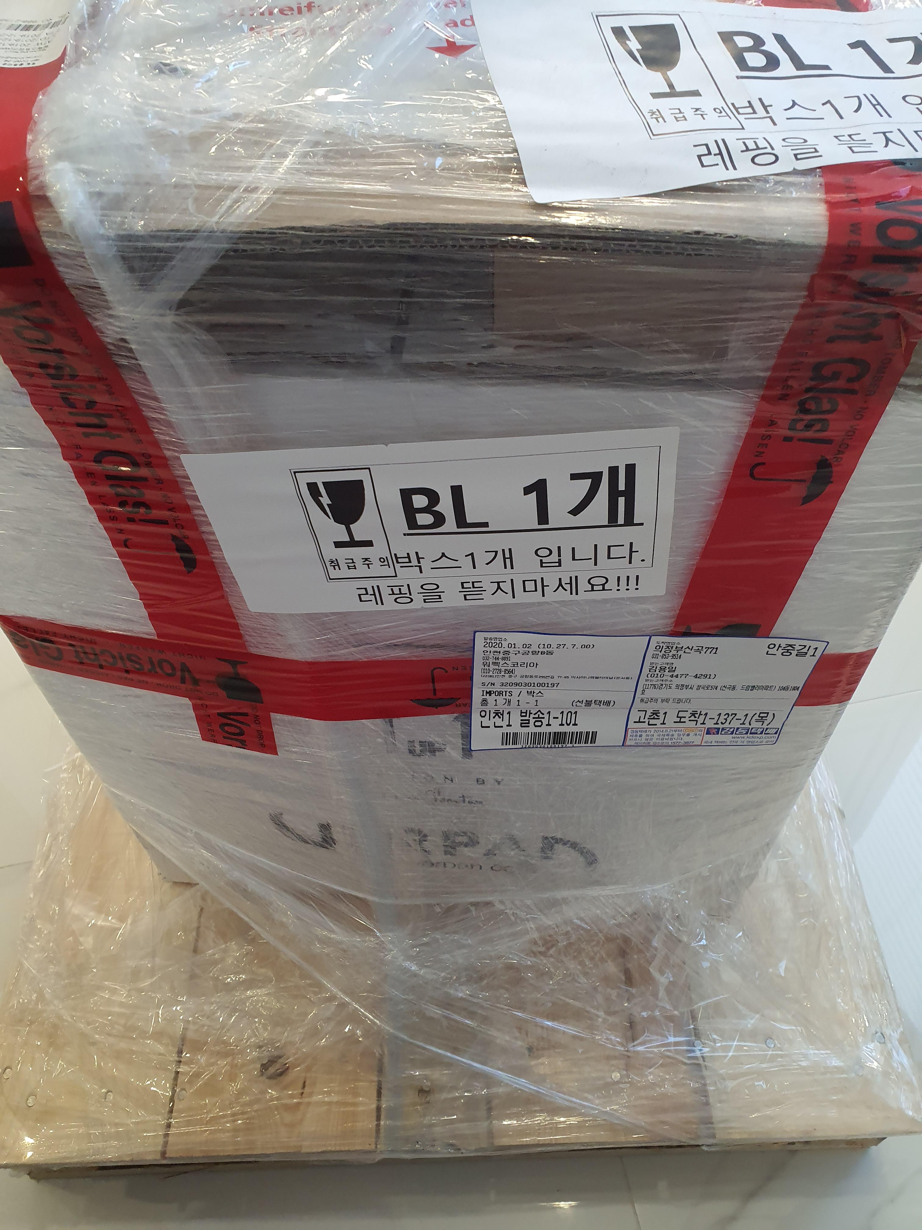 주문한지 한달만에 도착했다 팔렛작업까지되어 안전하게 도착했다