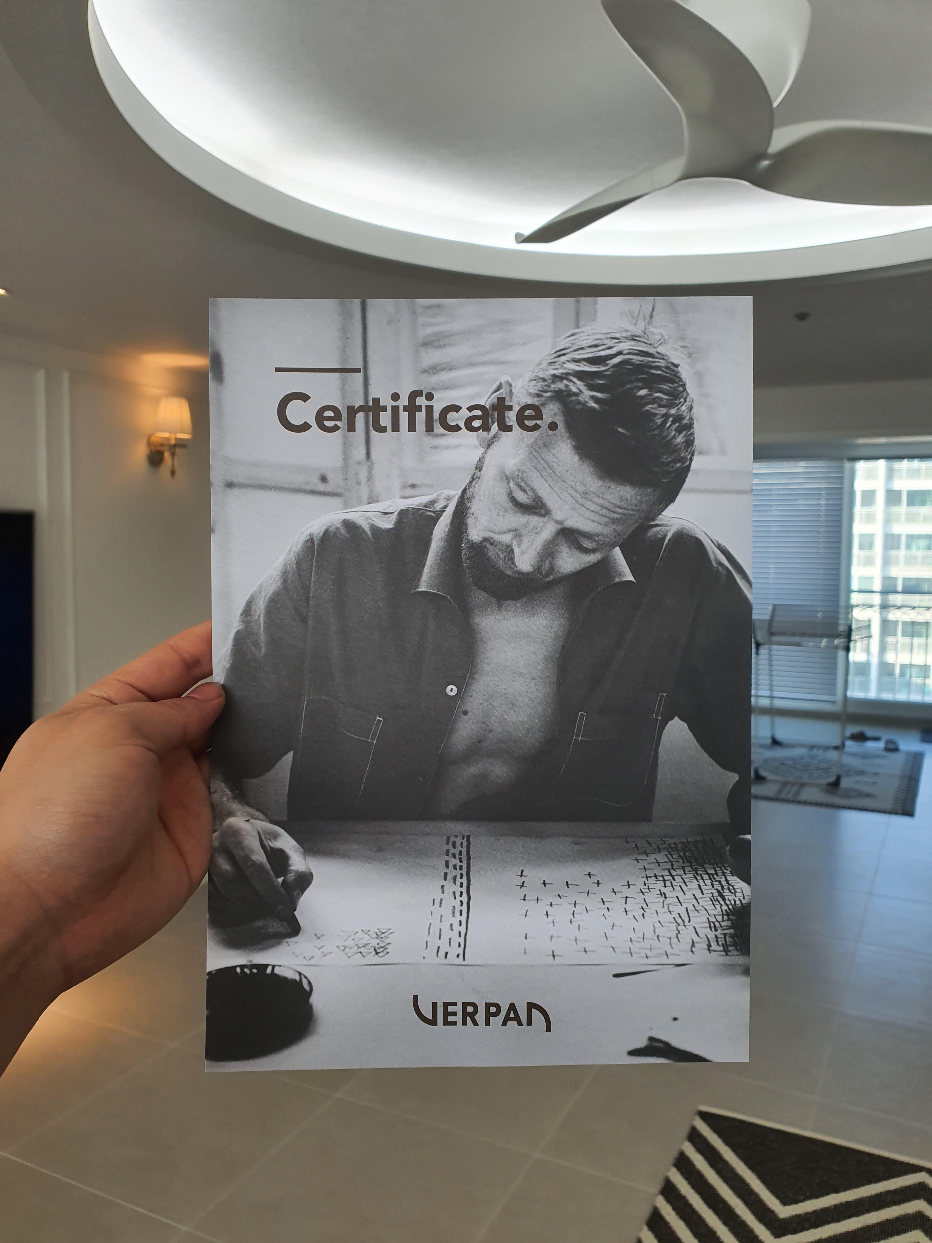 보증서에는 제조일 등 이 표기되어있으며 뒷면엔 디자이너님의 상반신이,.