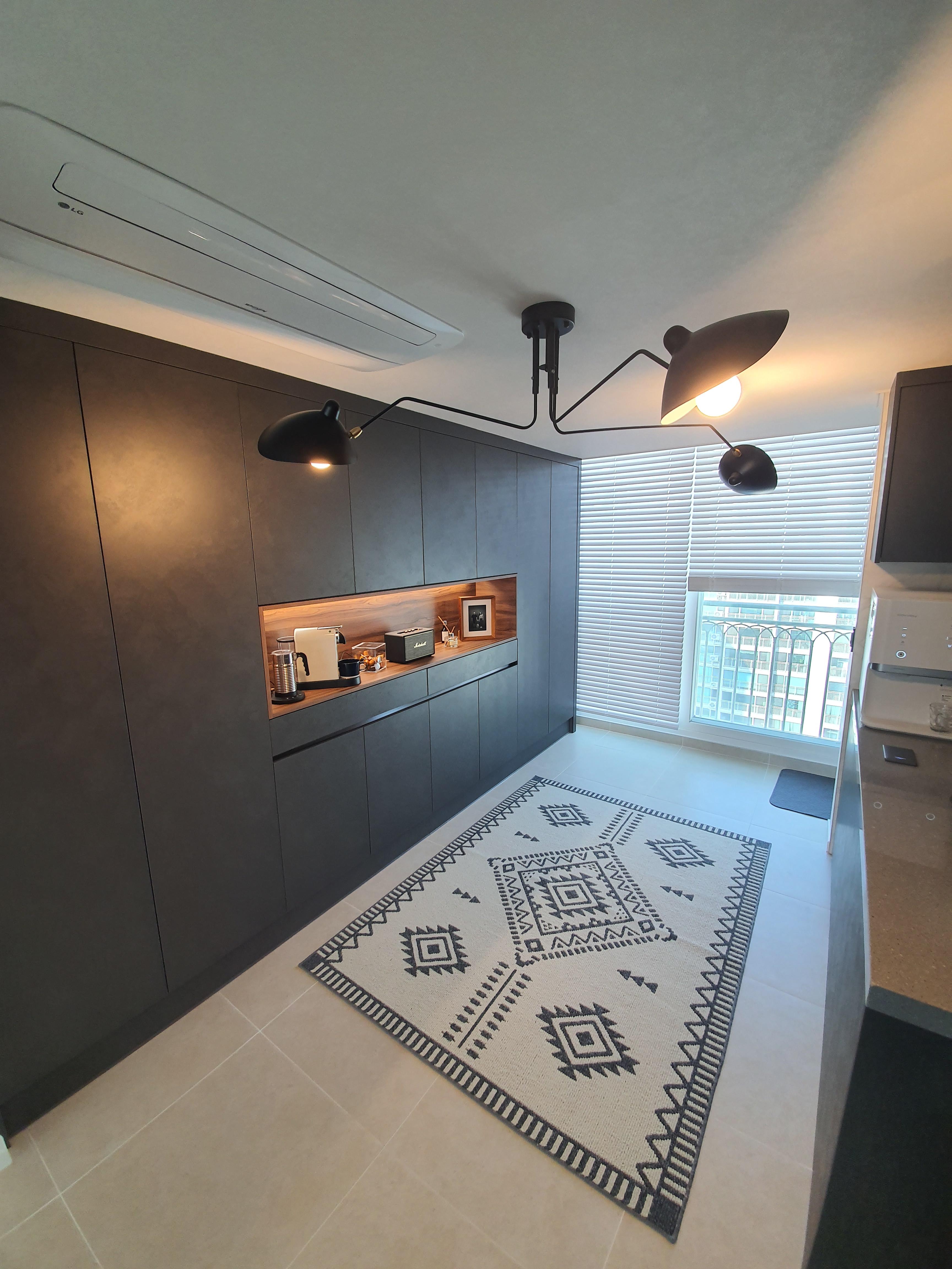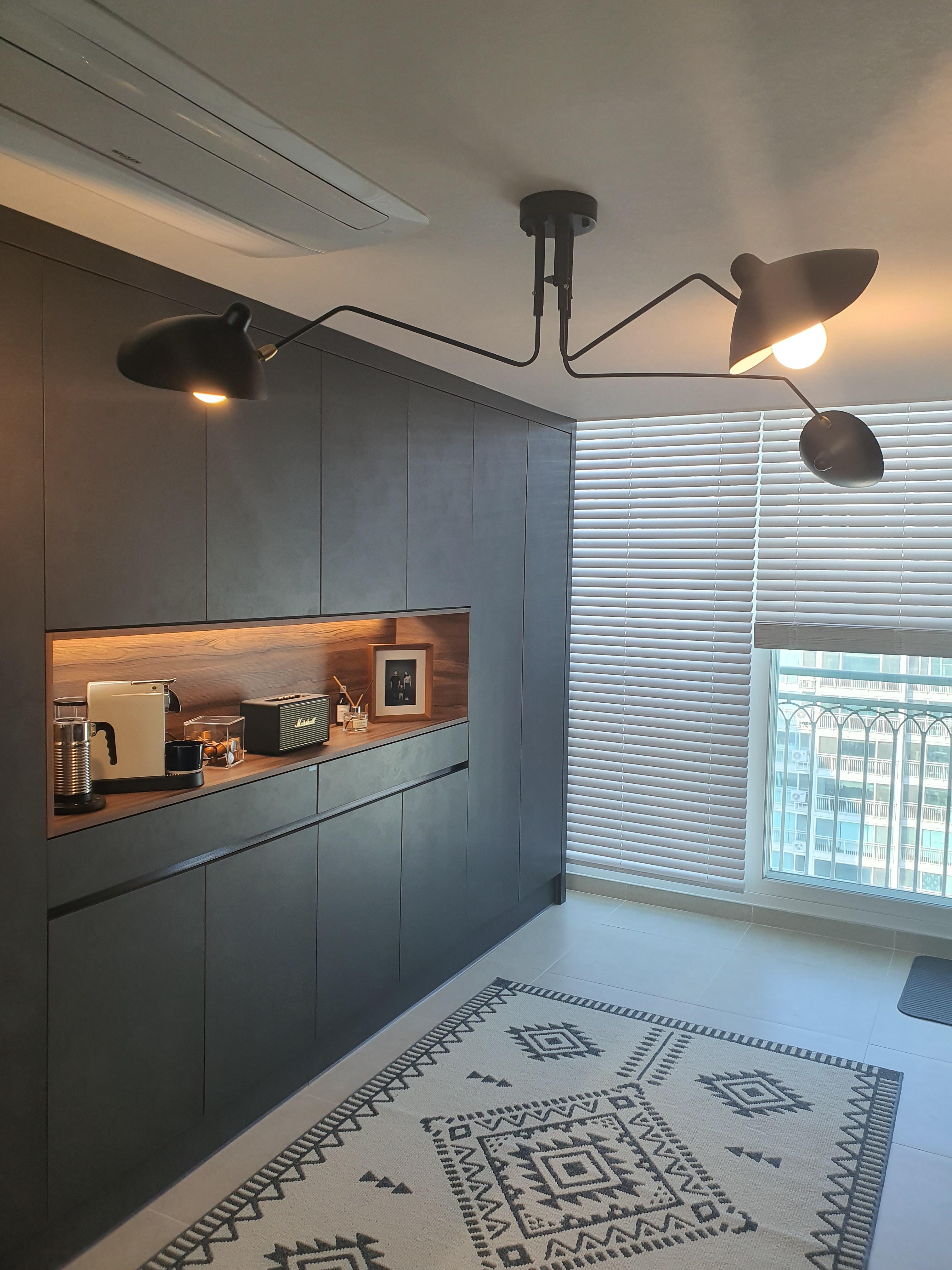 주방조명은 세르주무이 st 조명이다 애초에 안방에 설치목적으로 구매한 조명으로 설치까지 했다가 주방으로 이전설치했다 안방조명으로 사용될 용도였기에 st 로 진행했는데 주방 포인트등으로 사용되어도 부족함 없을만큼 제품의 마감 퀄리티에 부족함이 없었다 제품은 중국에서 직구했고 가격은 15~17만 정도 들었다