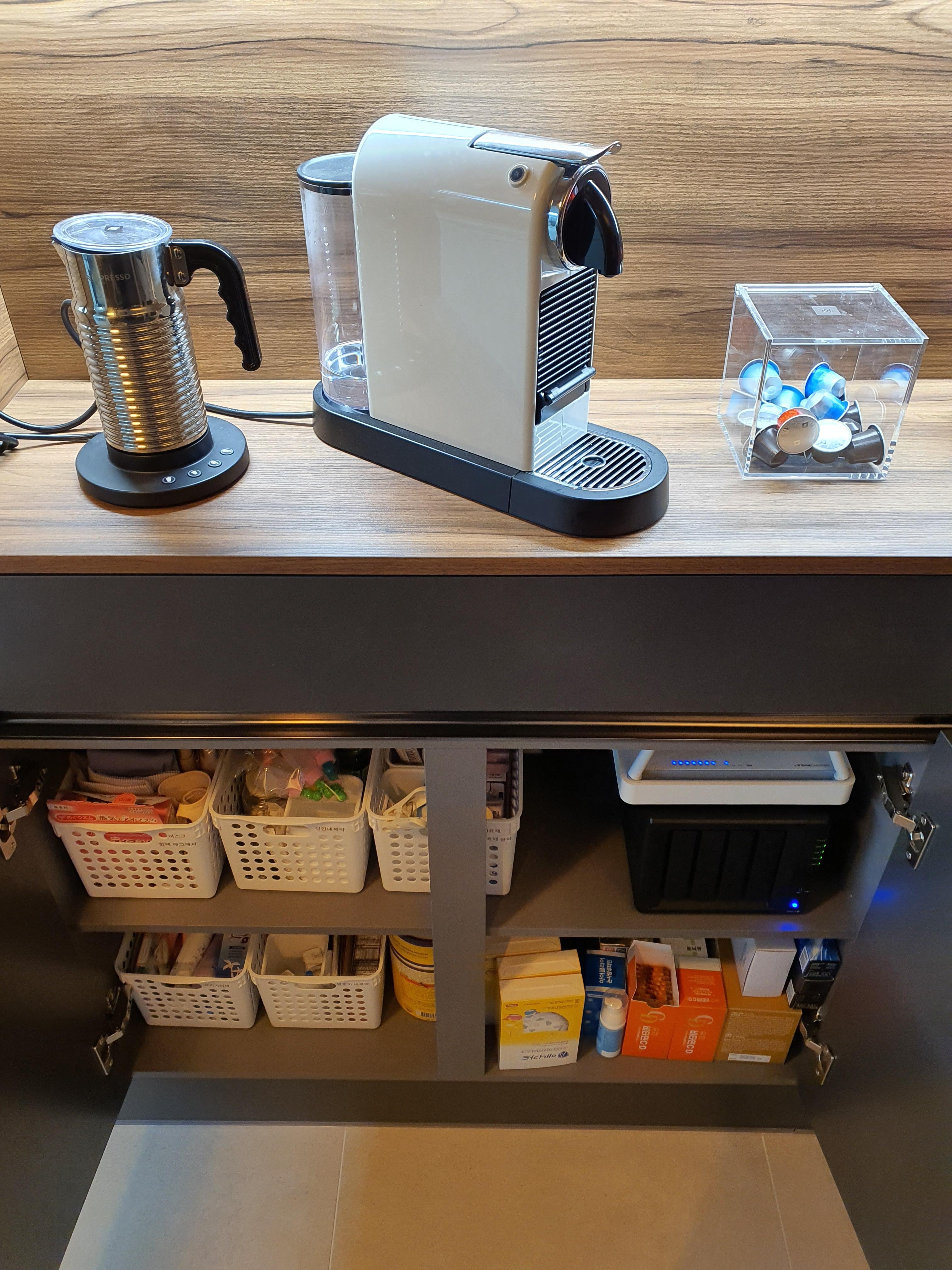비록 높이가 맞지않아 안테나를 비스듬하게 세웠지만 신호의 강도와는 차이가 없음 (추후 포스팅하겠지만 nas 는 예상치못한 정전으로 하드의 자료가 손실될 수 있기에 ups / 전력이 차단시 임시적으로 전기를 공금해주는장치 를 추가로 설치하기 위하여 왼쪽에 공간을 만들어줌)