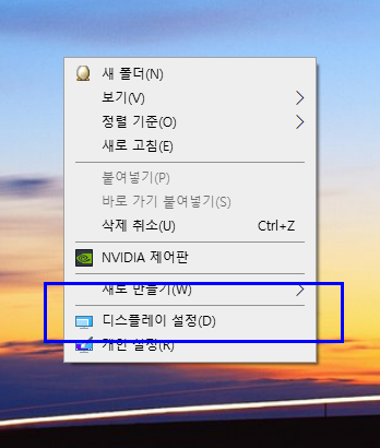 이런걸 굳이 설명할필요가 있을까 싶지만 그래도 혹시나 하는마음에 친절하게 설명하겠다 윈도우에서 마우스오른쪽 클릭하고 디스플레이설정 에 들어간다