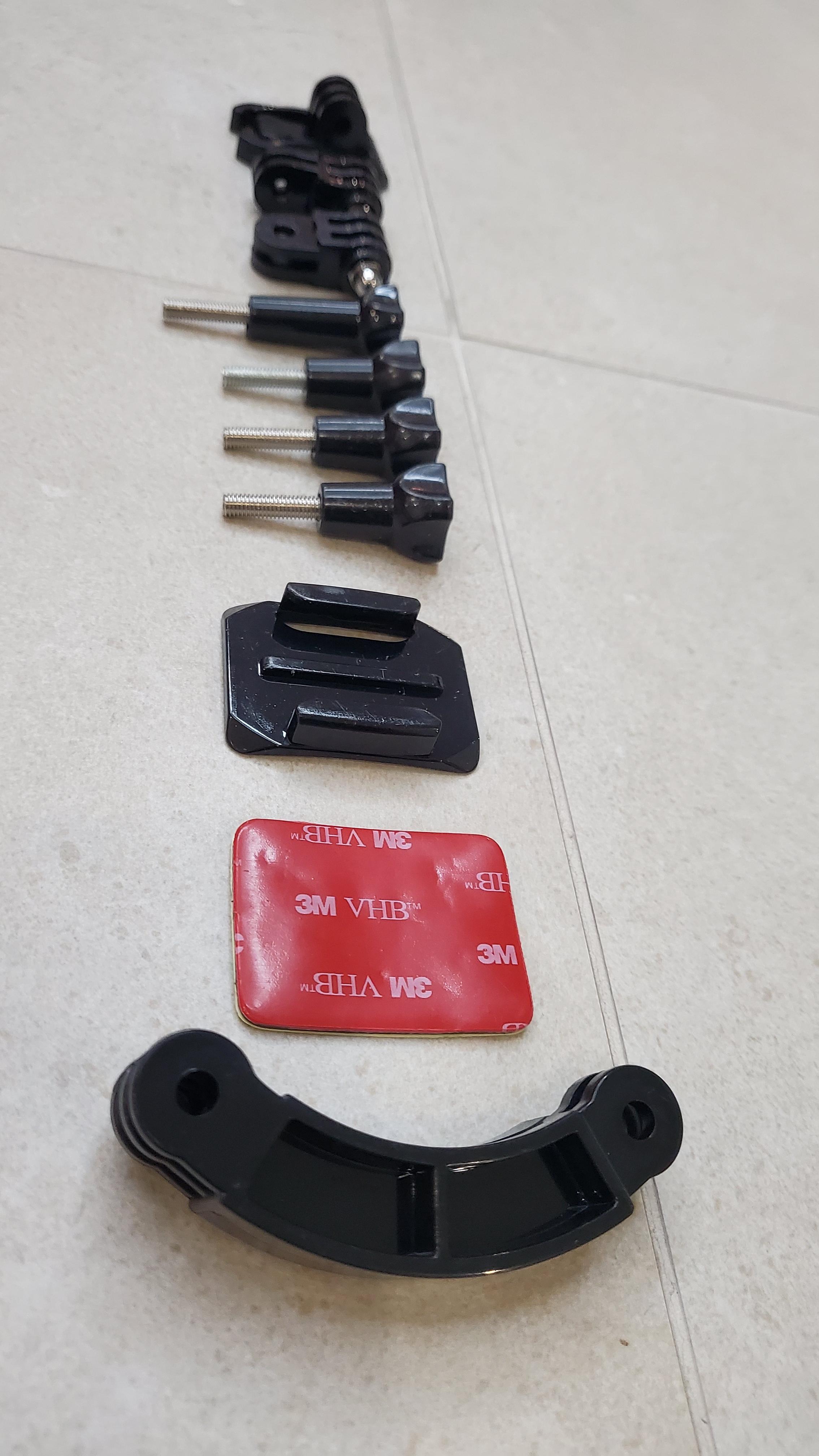고프로8 에 포함되어있던 번들 브라켓과 헬멧에 카메라를 장착하기 위한 브라켓 킷 을 구매하였다