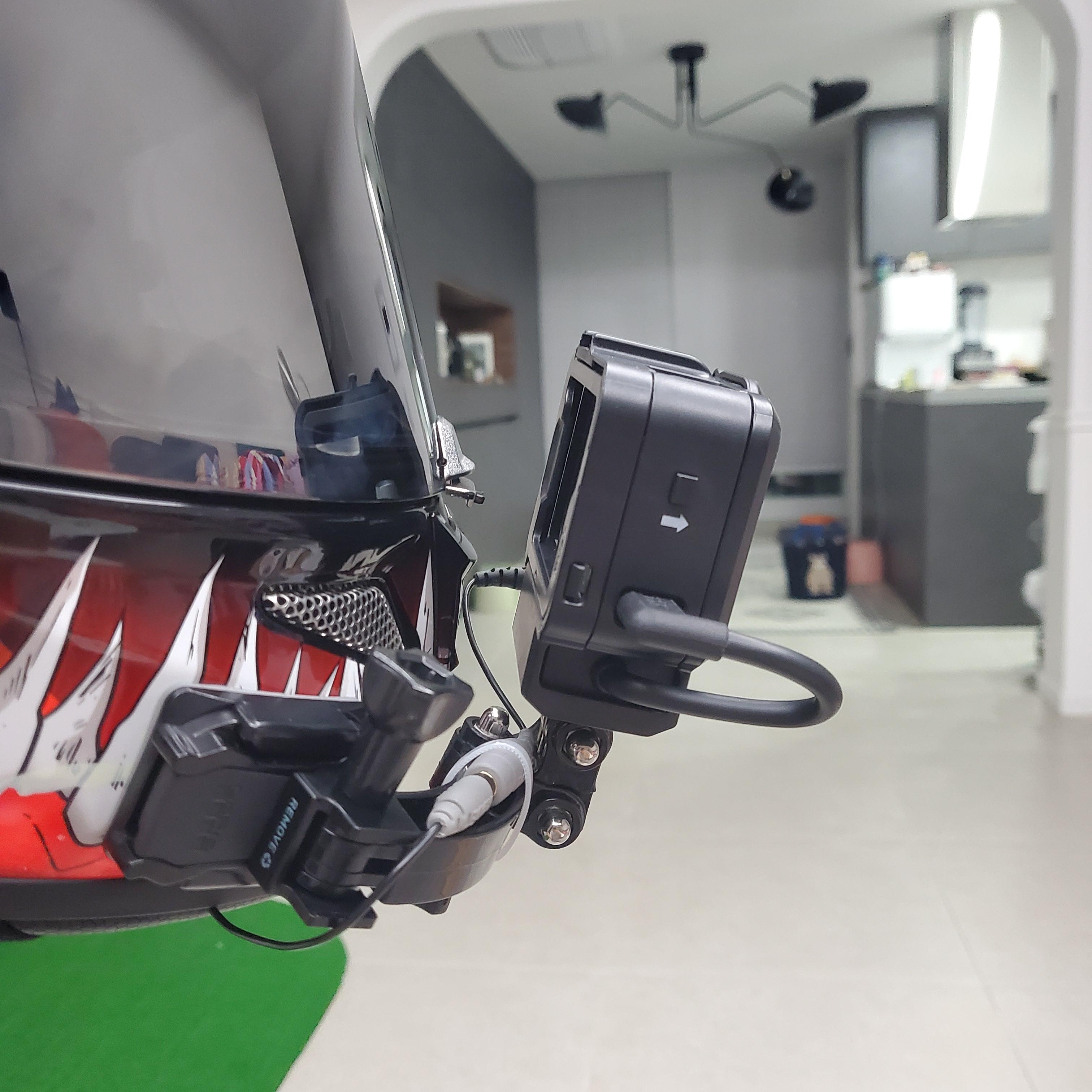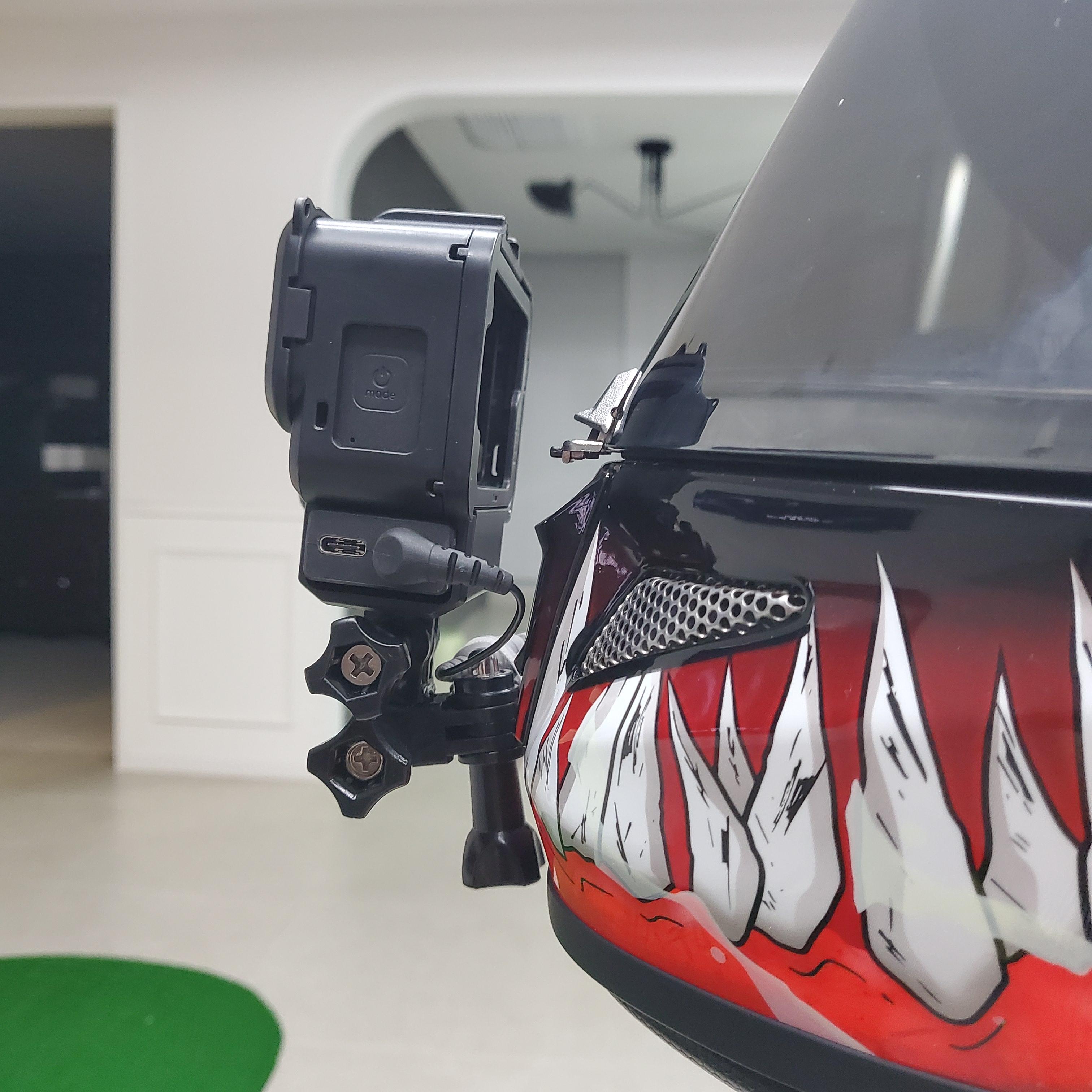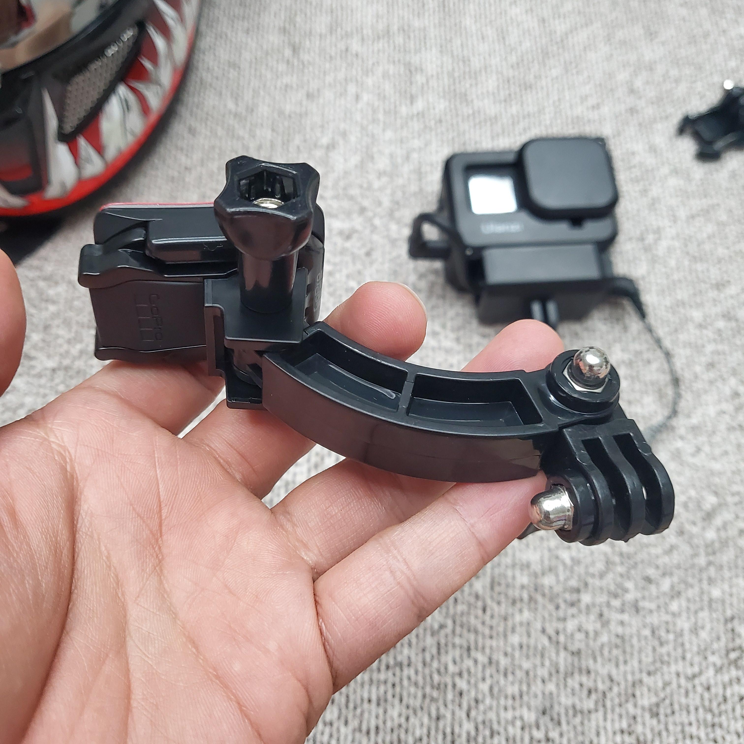 헬멧은 굴곡져있기에 당연히 굴곡진 브라켓이 필요하다 이는 헬멧 뿐 아니라 바이크 자체에 카메라 부착시에도 활용된다