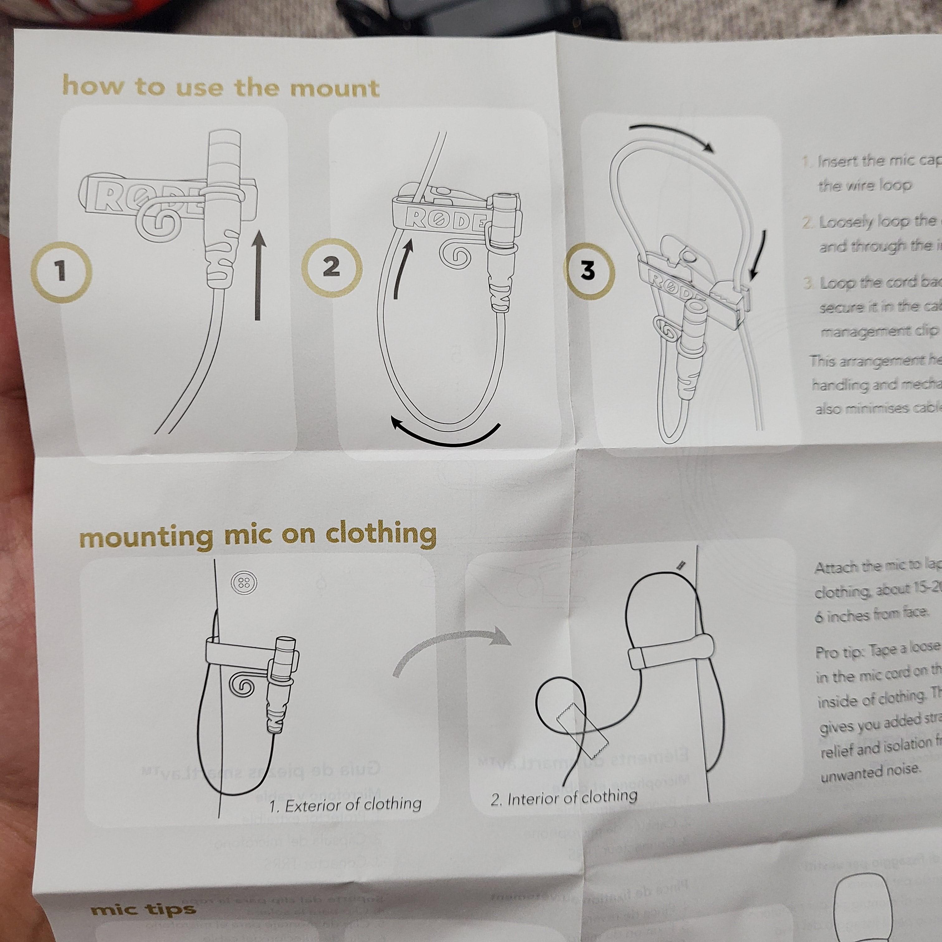 넉넉한 길이의 무지향성 마이크는 파열음을 막아주는 팝필터 윈드스크린이 덮여있으며 옷 등에 고정가능하도록 핀 이 포함되어 있다 케이블을 마무리 정리할 수 있는 밴드도 기본포함되어 있어 고객을 위한 최소한의 노력이 보인다