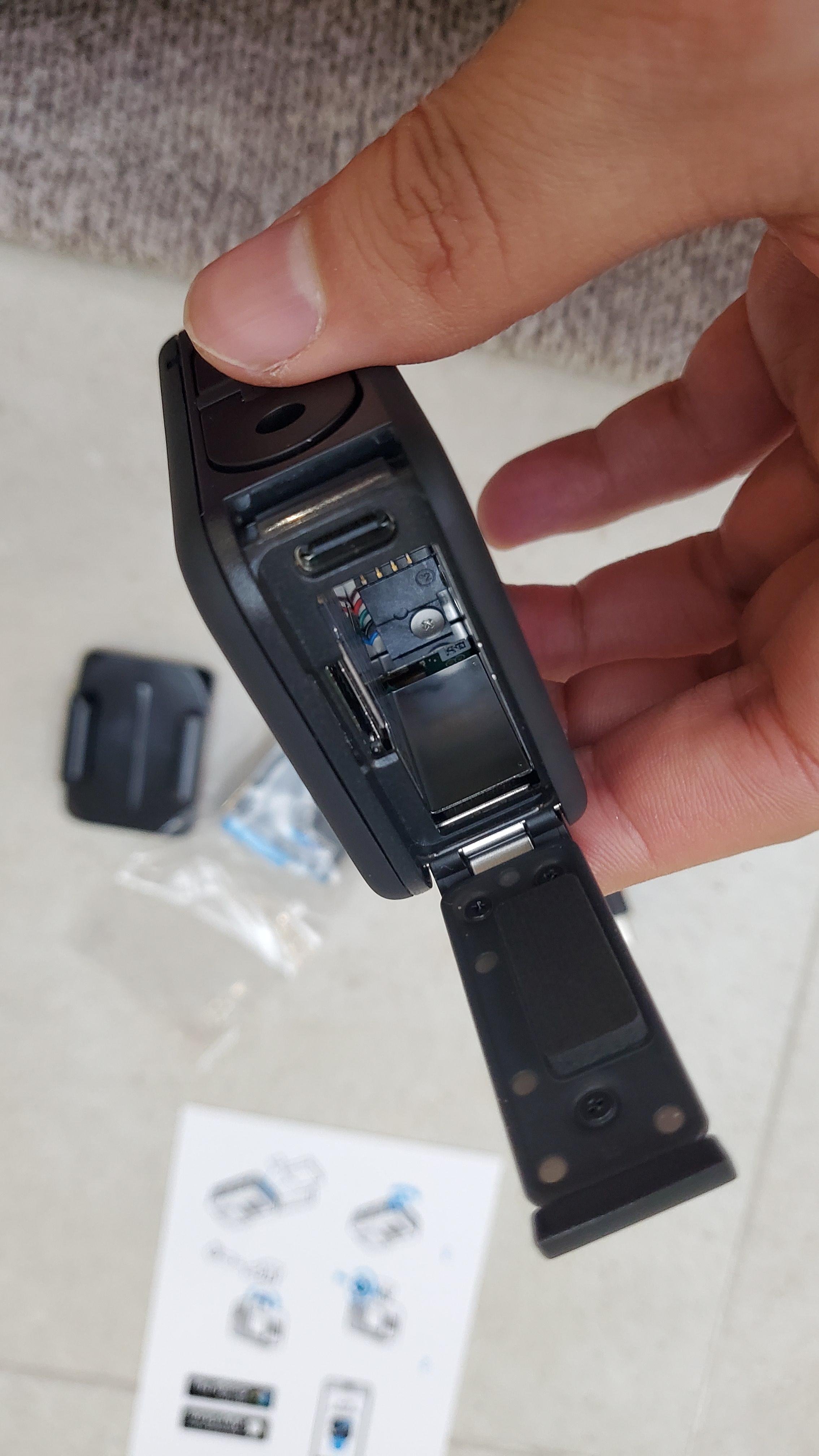 사이드를 오픈하면 베터리와 메모리카드를 삽입하는 형태인데 사이드 케이스를 제거하고 올란지케이스를 사용하기에 별도로 오픈없이 충전은 가능한데 메모리카드는 매번 빼서 컴퓨터에 연결해야해서 불편하다 고프로에서 클라우드에 바로 영상이 업데이트 되도록 지원하고 있지만 클라우드의 특성상 업/다운로드가 느릴것이 분명하기에 사용하지 않고 있다
