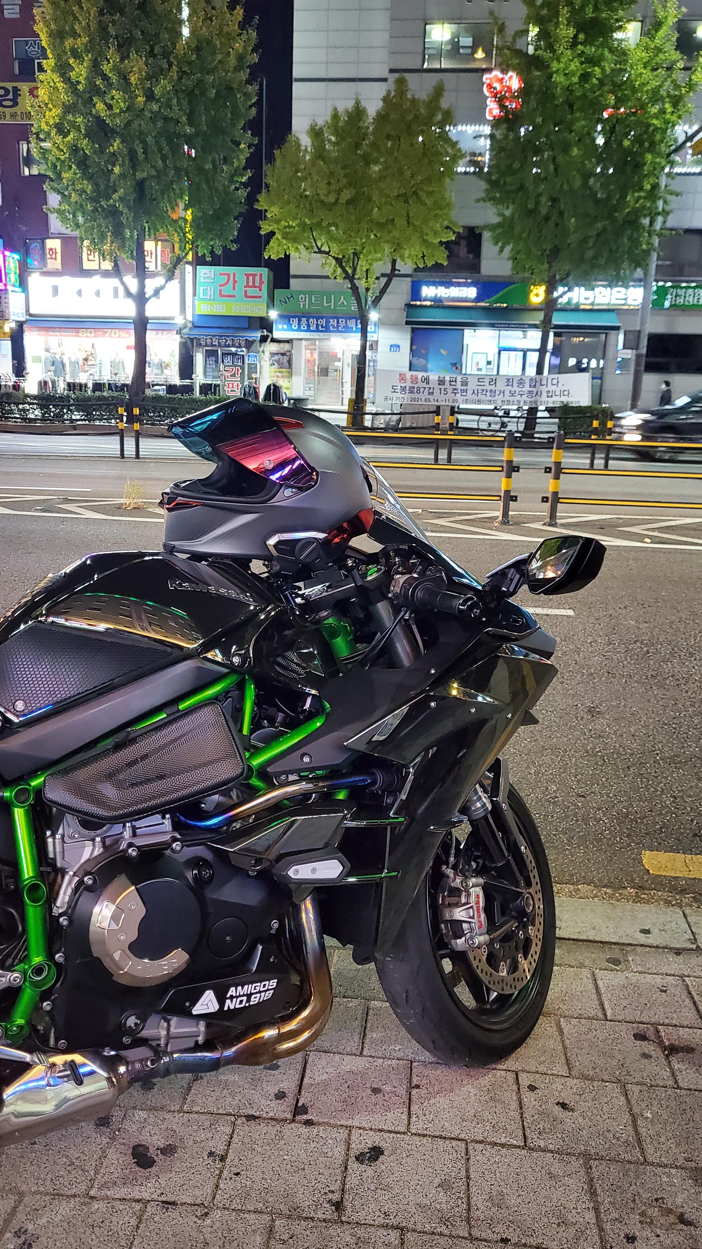그러던 어느날 지인의 소개로 상태좋은 가와사키 H2 심지어 녹색프레임에 언리밋(2015년 한국으로 수입된 10대는 리밋이 없었다) 매물을 운 좋게 구할 수 있었다 15년식의 바이크 치고는 말도안되는 금액을 설레는 마음으로 전달하고 이녀석을 모셔왔다